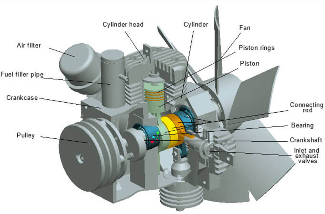 -Привод от электродвигателя или бензинового двигателя обеспечивает потребность в подаче воздуха в различных условиях.
